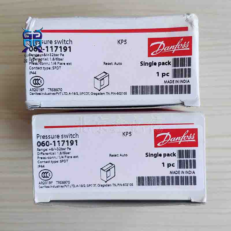Danfoss丹佛斯KP5压力控制器适用于冷冻和空调系统: 食品零售、大型商业制冷、小型商业制冷、商用空调、食品加工和存储。订货代码是:060-1171